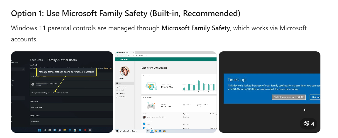 "Below is the recommended, native method to add parental controls on a Windows 11 PC, followed by practical notes and alternatives.