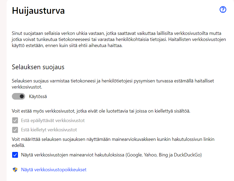 - Jos mitään epäilyttävää ei löydy, selaaminen jatkuu normaalisti.